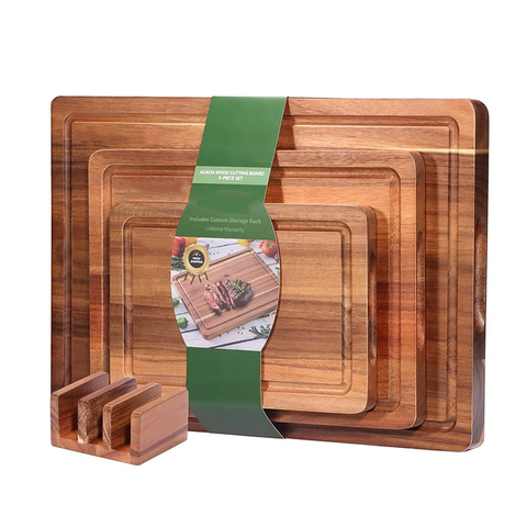 ألواح تقطيع السنط كبيرة جدًا ، (مجموعة من 3) ألواح تقطيع مع مجموعة عصير أخدود السنط